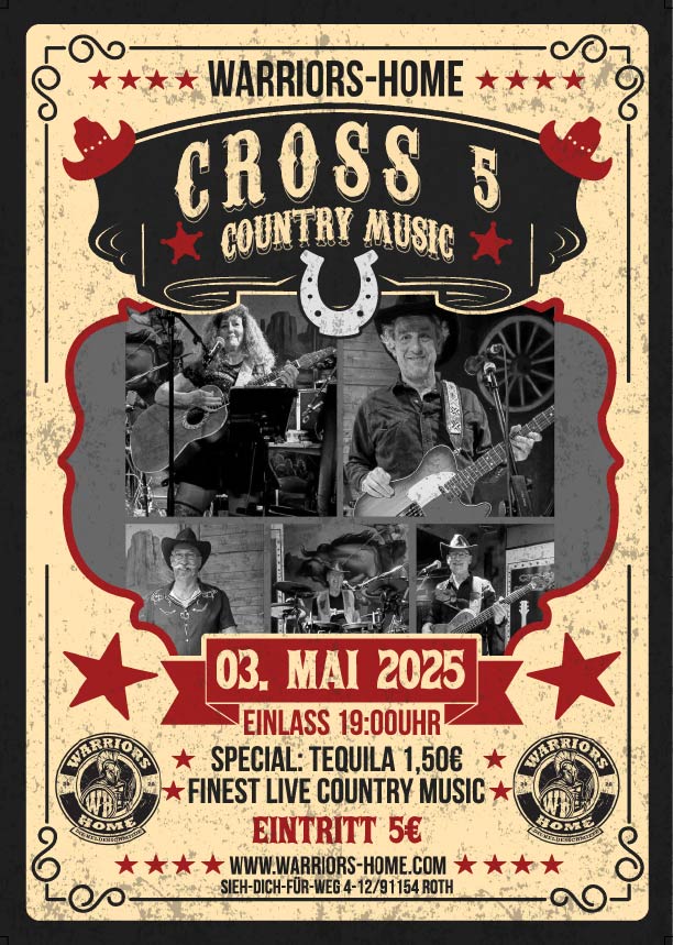 Zieht eure Cowboystiefel an, schnappt euch den Cowboyhut und kommt zu unserem Coutry-Abend mit Live Band und Line Dance – da bleibt garantiert kein Stiefel still!